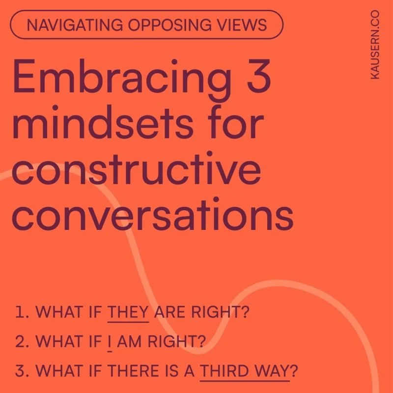 Rather than viewing the conversation as a binary clash of ideas, consider the possibility of finding a middle ground or a third way that incorporates elements from both perspectives. This mindset promotes collaboration and compromise, emphasising shared goals and common ground.