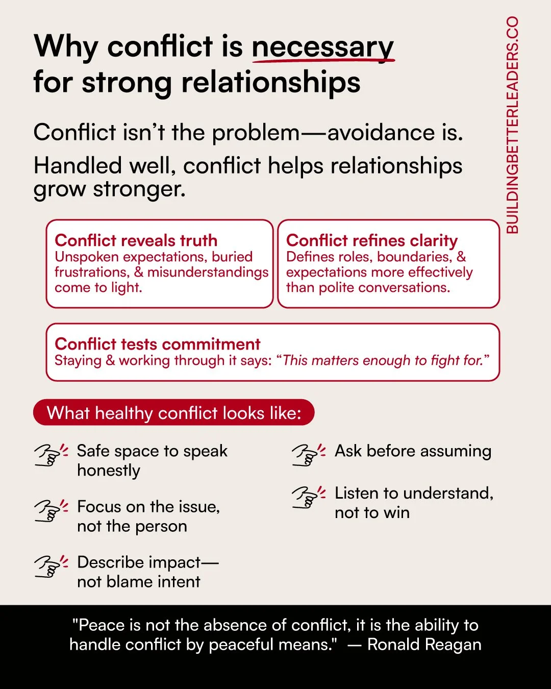 Conflict refines clarity. It helps define roles, expectations, and boundaries more clearly than polite conversations ever could.