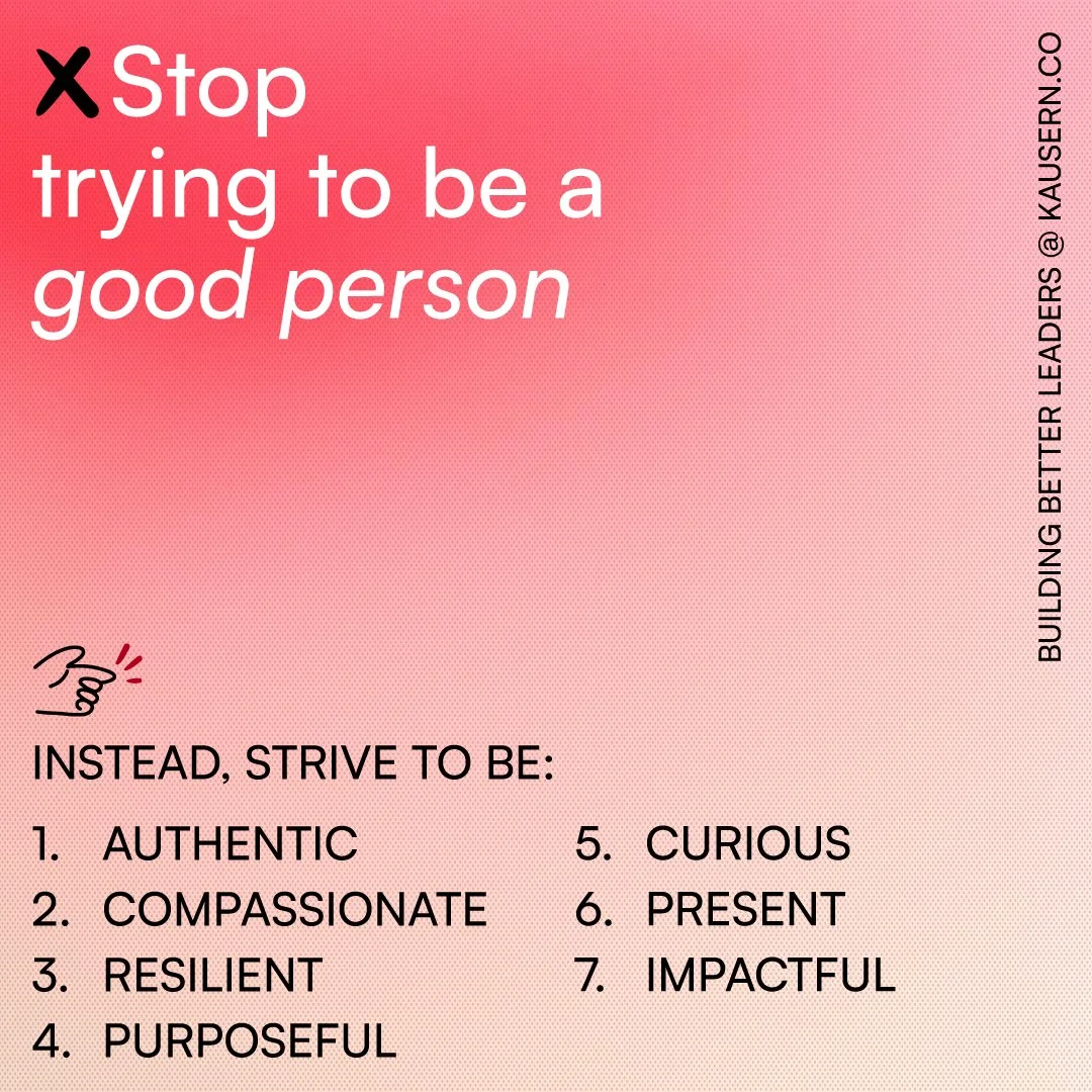 In other words, striving to be a "good person" can create a rigid and idealized identity, leading to frustration when we inevitably fall short. After all, we’re only human. Instead, let’s shift from striving to be a “good person” toward these alternatives: