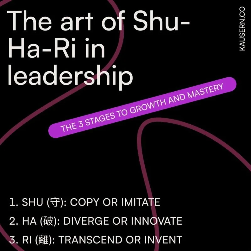Shu-Ha-Ri is a Japanese martial art concept, describing the stages of learning to mastery. The word “shuhari” roughly translates to "first learn, then detach, and finally transcend."